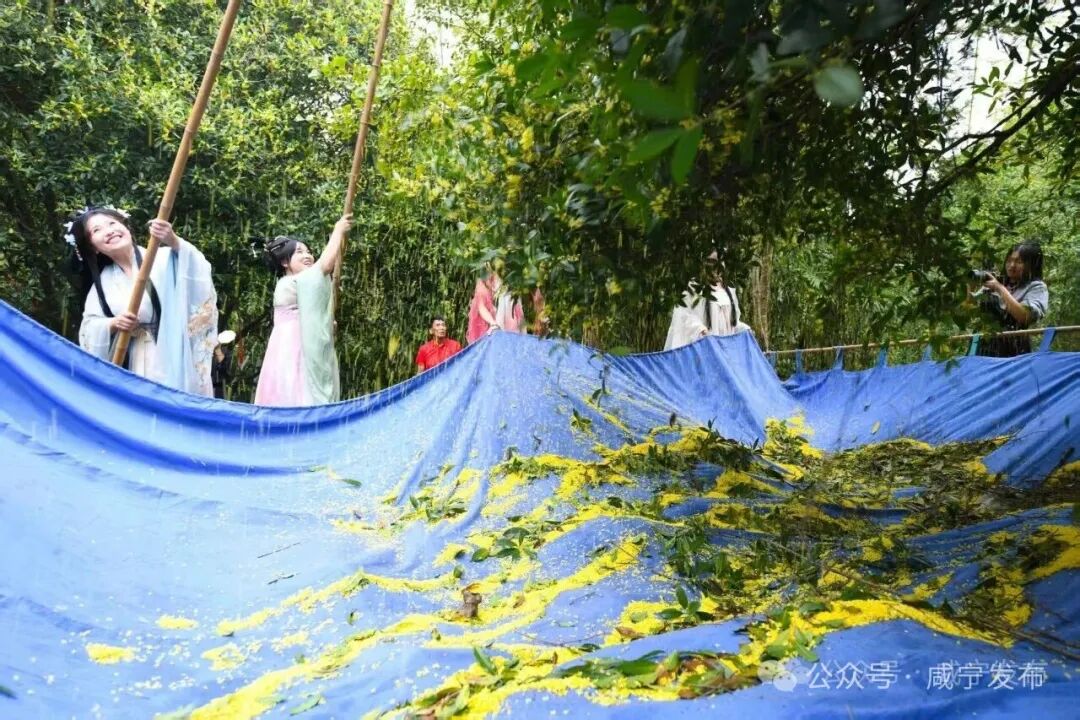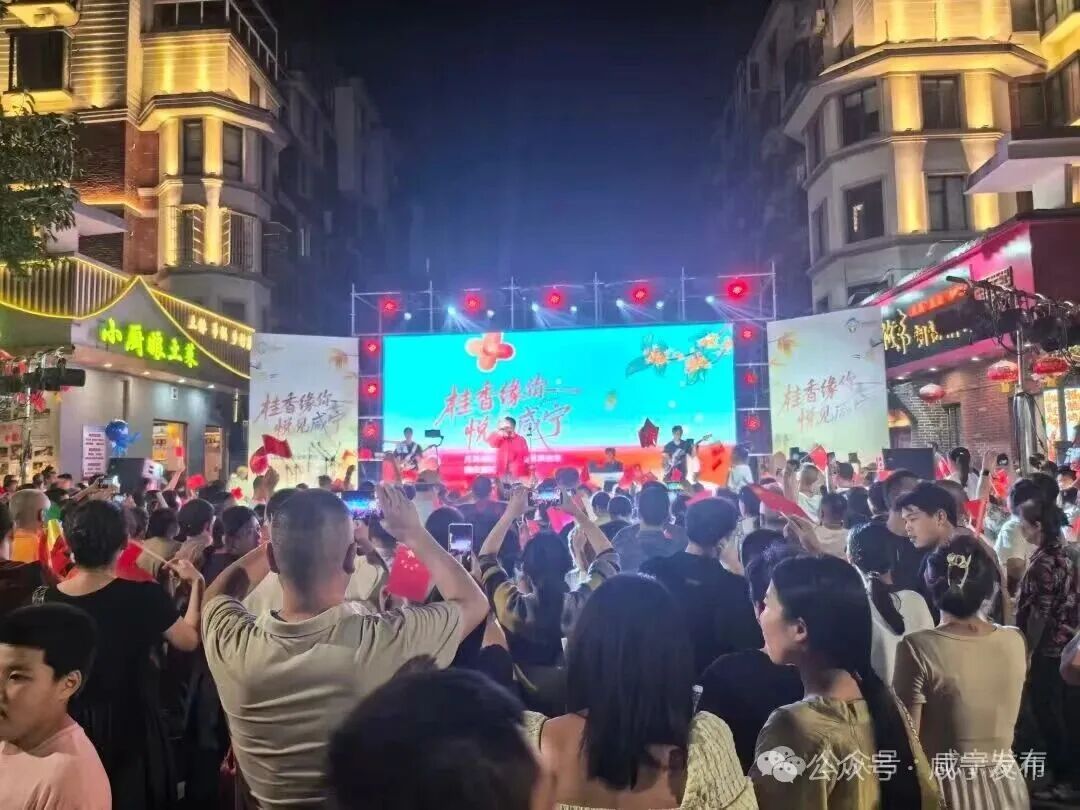 场景出圈的密码,在于跨界融合与精准触达。围绕“桂香缘你·悦见咸宁”核心内容,各类特色活动精准击中游客需求,多业态深度融合加快推进。月亮湾街区化身“诗意舞台”,“桂香缘你·悦见咸宁”音乐节持续开唱,Line2乐队、房俊喆等艺人轮番登场,经典老歌与青春潮音交替回荡。当《我和我的祖国》旋律响起,万名观众手举红旗同唱,将节日氛围推向高潮。依托发布的赏桂地图与观赏指数,咸安区桂花镇古桂群、湖北川玉有机茶园等景点迎来大批“寻香客”,游客不仅能赏桂、打桂花,还能体验桂花茶制作,让“桂香咸宁”的名片愈发鲜活。双节期间,抖音顶流唐艺携团队在咸宁开唱,以“音乐盛宴+直播互动+咸宁优品带货”模式,实现聚人气与促消费的双向赋能。