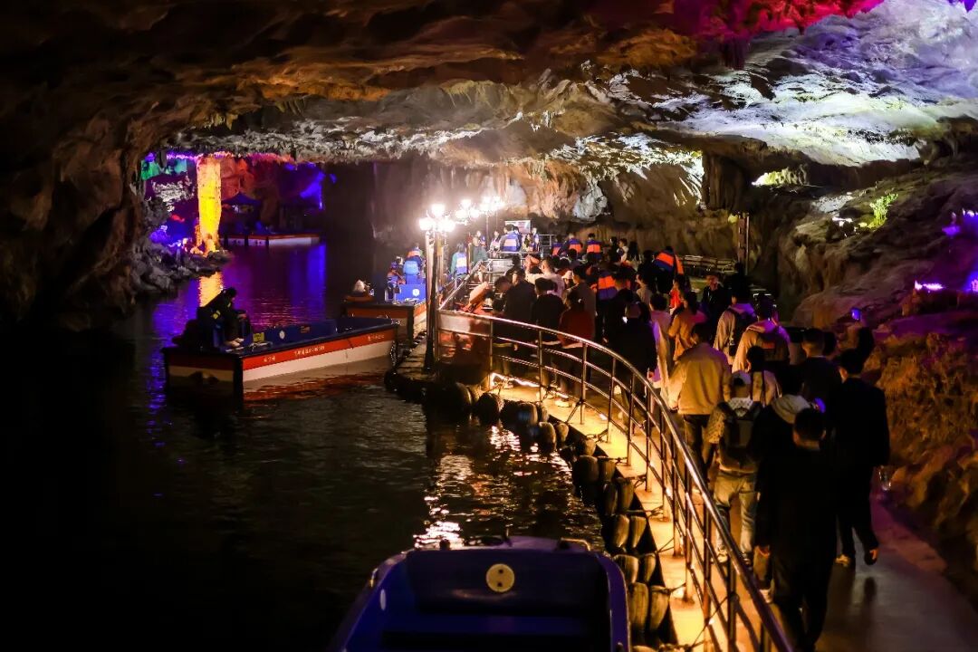 15日,踩线团首站探访了被誉为“华中溶洞奇观”的隐水洞,大家乘船穿梭于钟乳石之间,感受大自然的鬼斧神工与独特魅力。