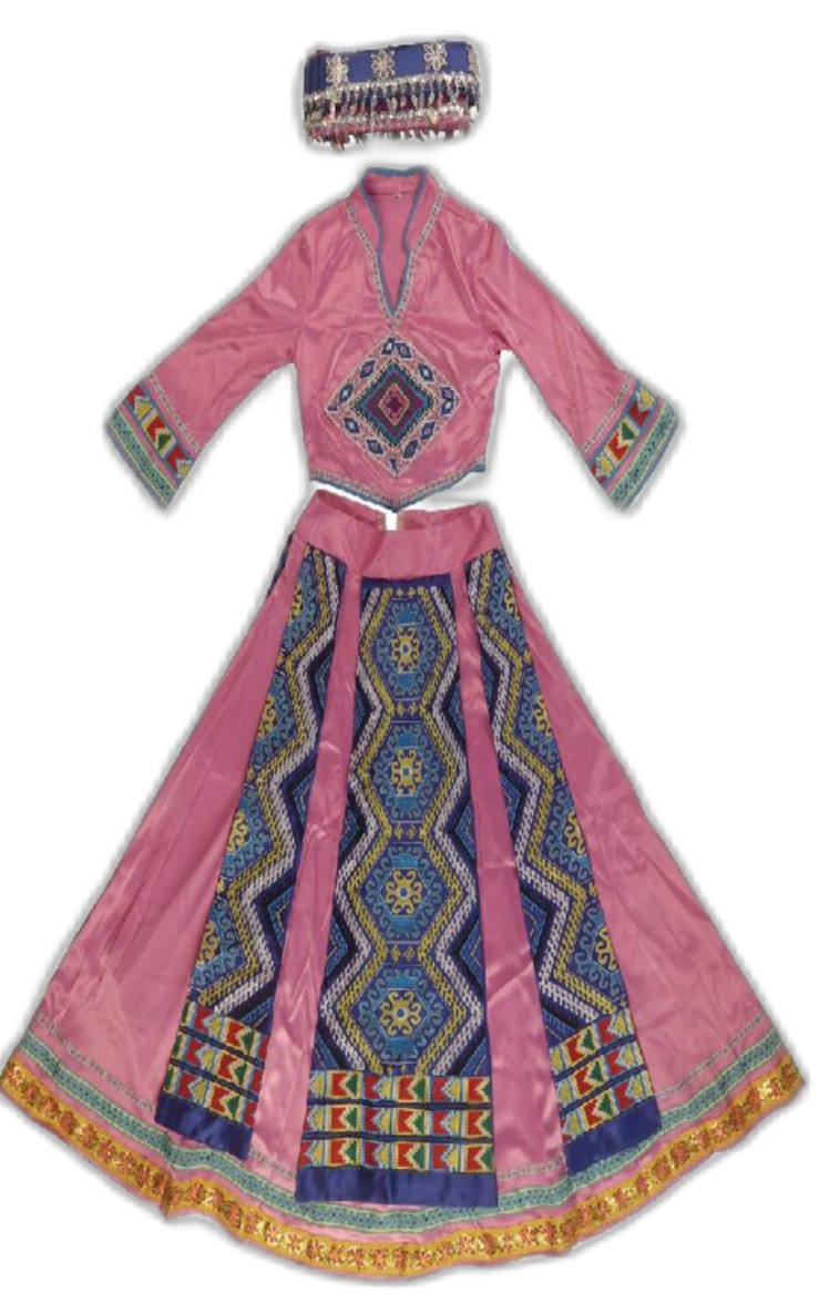 土家服饰展区呈现“改土归流”后的服饰演变,妇女矮领右衽短衫、男子“蜈蚣扣”对襟衣、孩童“虎头鞋”“虎头帽”等展品各具特色。服饰以黑、白、蓝为主色调,形制宽大便于劳作,既暗藏白虎图腾崇拜,也彰显民族勤劳豁达的精神。祭祀与庆典服饰则色彩艳丽,尤以红色为盛,尽显民俗仪式感。