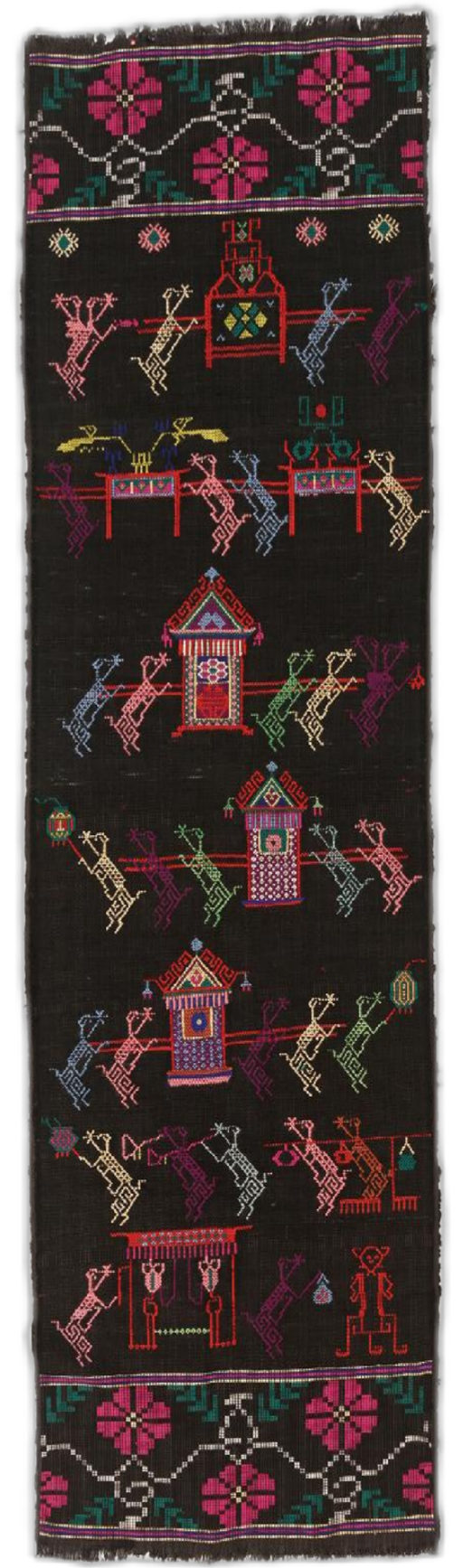 西兰卡普展区聚焦这一“写在织物上的土家历史”,其“通经断纬反织法”造就鲜明特色,图案涵盖动物、几何、民俗等七大类。作为土家姑娘的嫁妆与身价象征,如今已融入现代家居生活。展区还展示唐洪祥、刘未香等非遗传承人的精品,凸显工艺传承与创新。