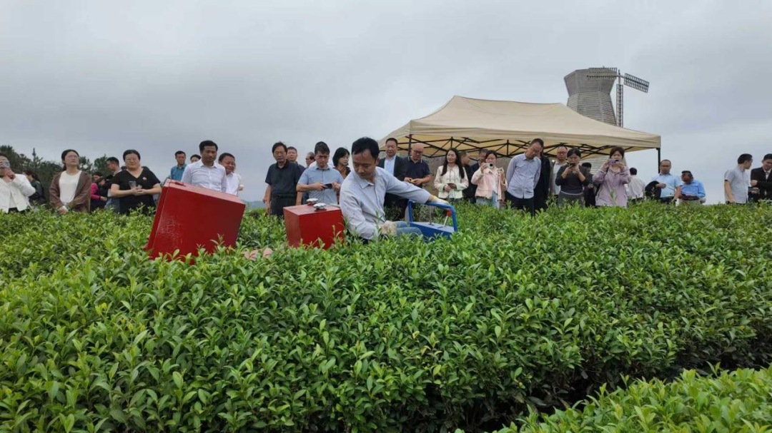 与会人员实地考察省科技服务茶产业链“515”行动核心示范基地——咸宁芽旗香茶业发展有限公司。在观摩现场,由市农科院自主研发的茶园多功能管理机受到与会代表的一致好评。