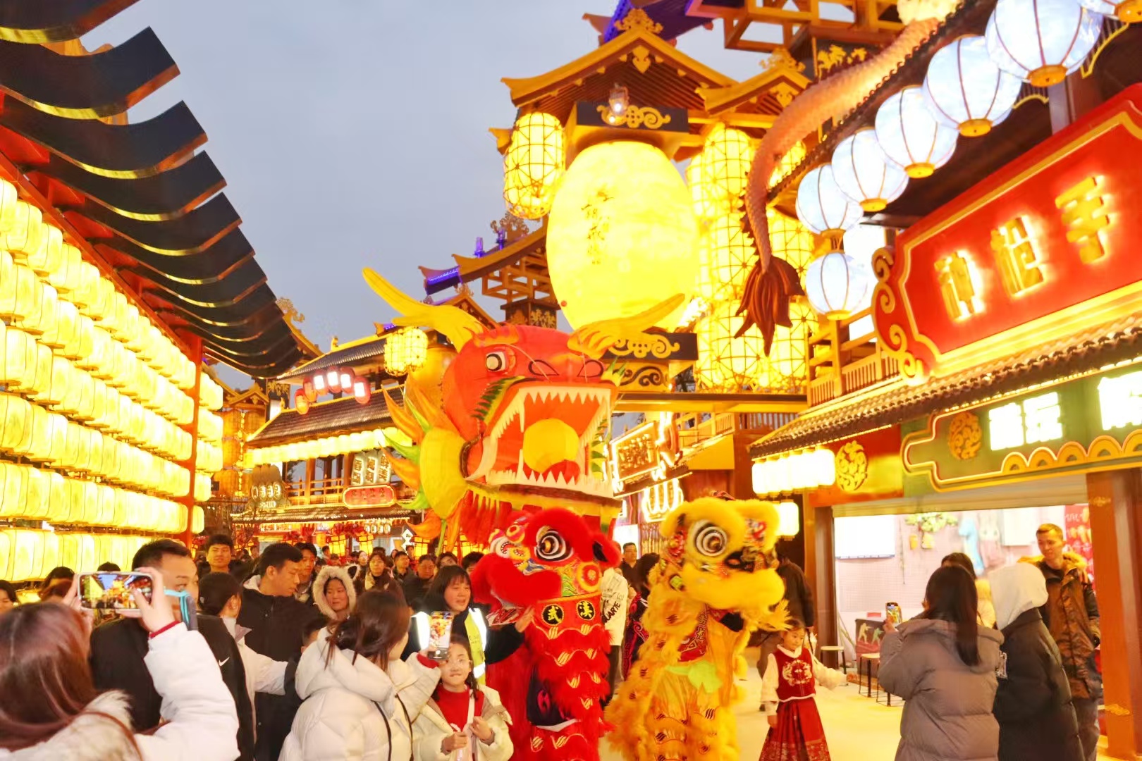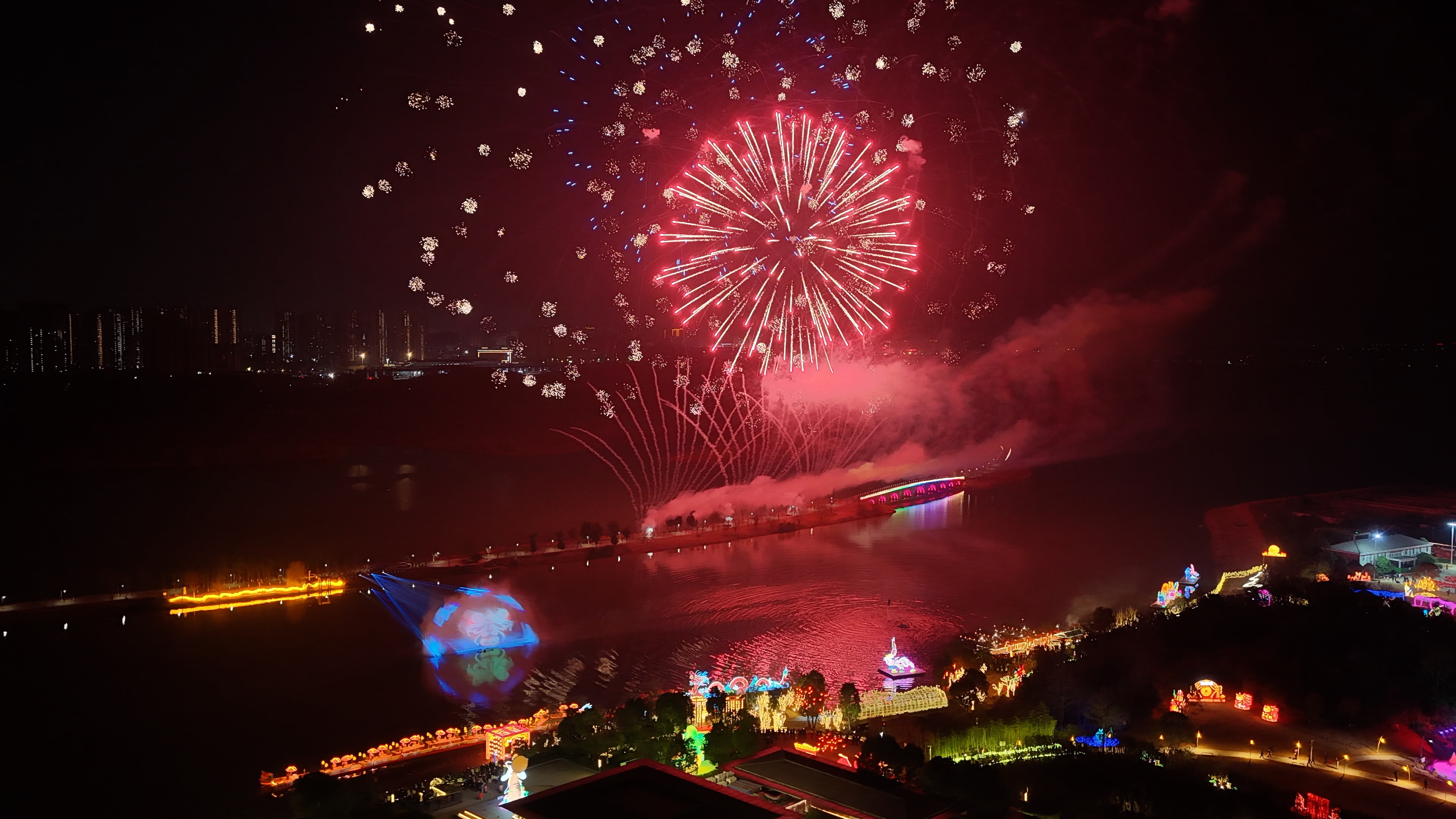 2月20日农历大年初二,大洲湖·桂花赏心谷桂月湾,近百组非遗花灯流光溢彩。作为“唐风宋韵”核心景区,大洲湖·桂花赏心谷桂月湾深度融合桂花文化、嫦娥传说与状元文化,6米高“咸宁银桂王”灯组熠熠生辉,百米竹筏游龙蜿蜒水面,“水陆空” 三位一体的沉浸式体验让武汉游客李静书直呼 “花灯太美了,映照着人好漂亮”。